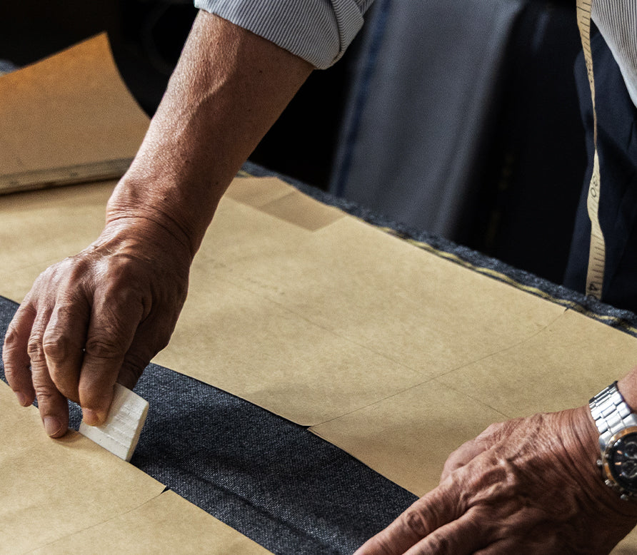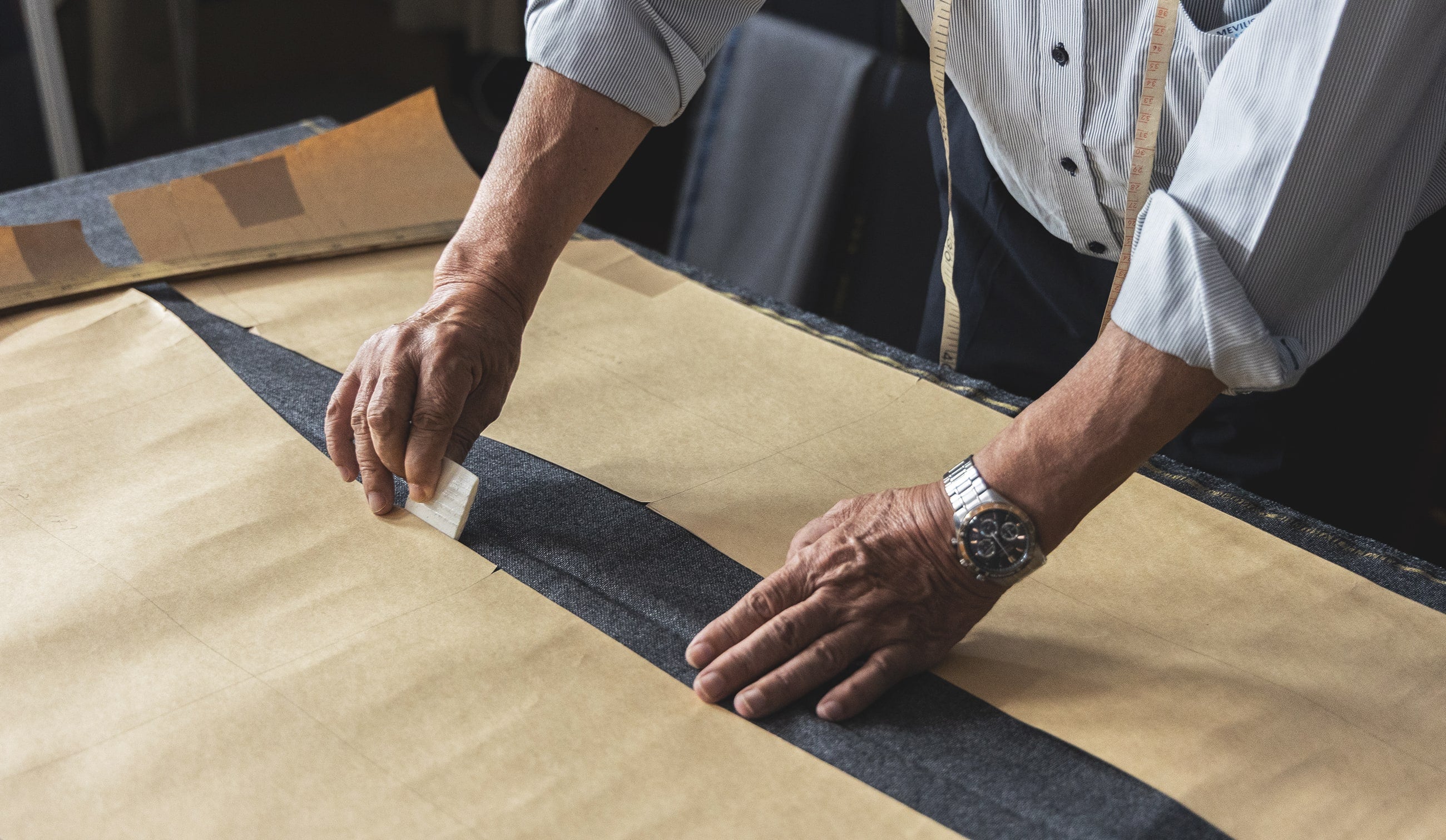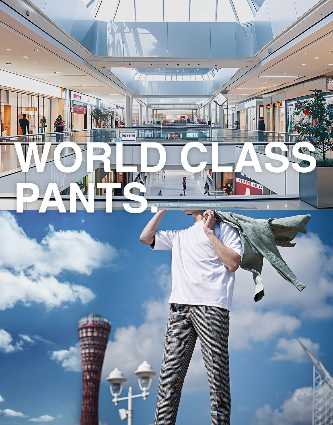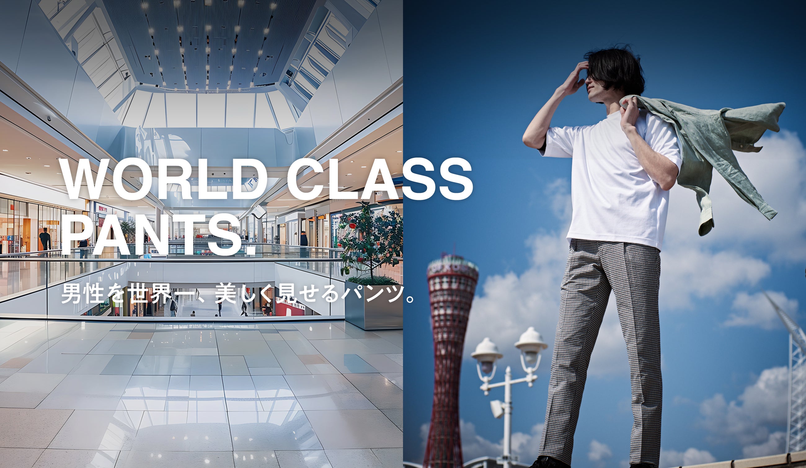長年の日本人男性の体形研究から見出した、匠の技を駆使し、抜群の穿き心地と美しいシルエット、立ち姿を実現。パンツ縫製用の特別な機械と工場スタッフの手作業で一本一本作り上げています。
