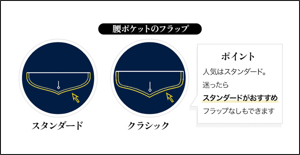こだわる方には、「スタンダード」と「クラシック」2種類のフラップデザインをご用意。