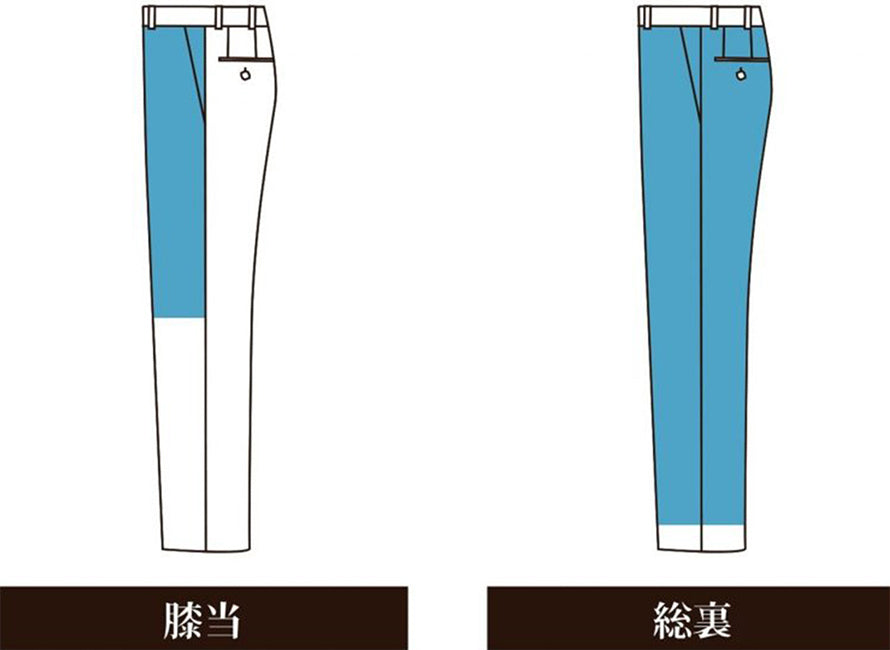 穿くときの滑りをよくし、身生地の傷みを防ぐ役割もあるひざ裏地。