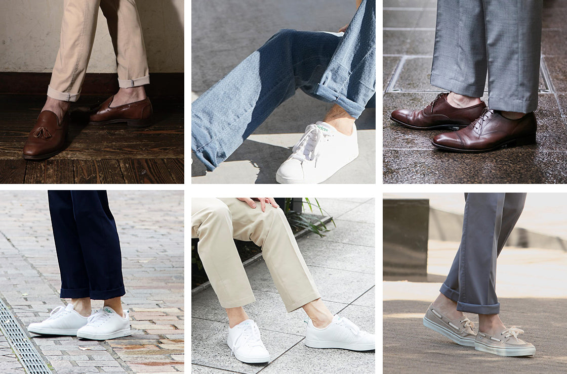 また、ノークッションにしておいて、夏にはロールアップするのもおもしろい着こなしです。