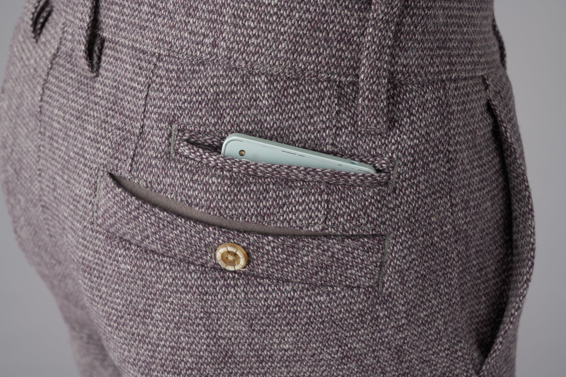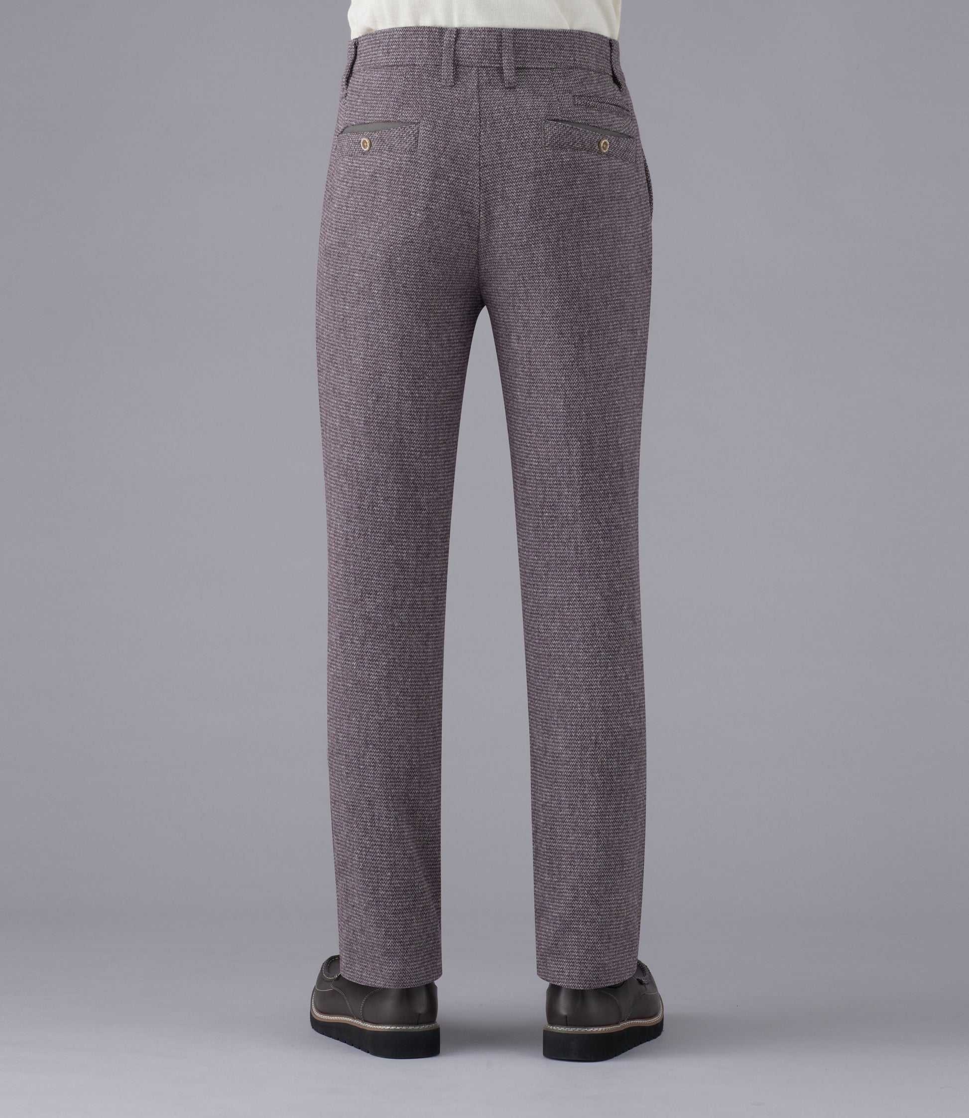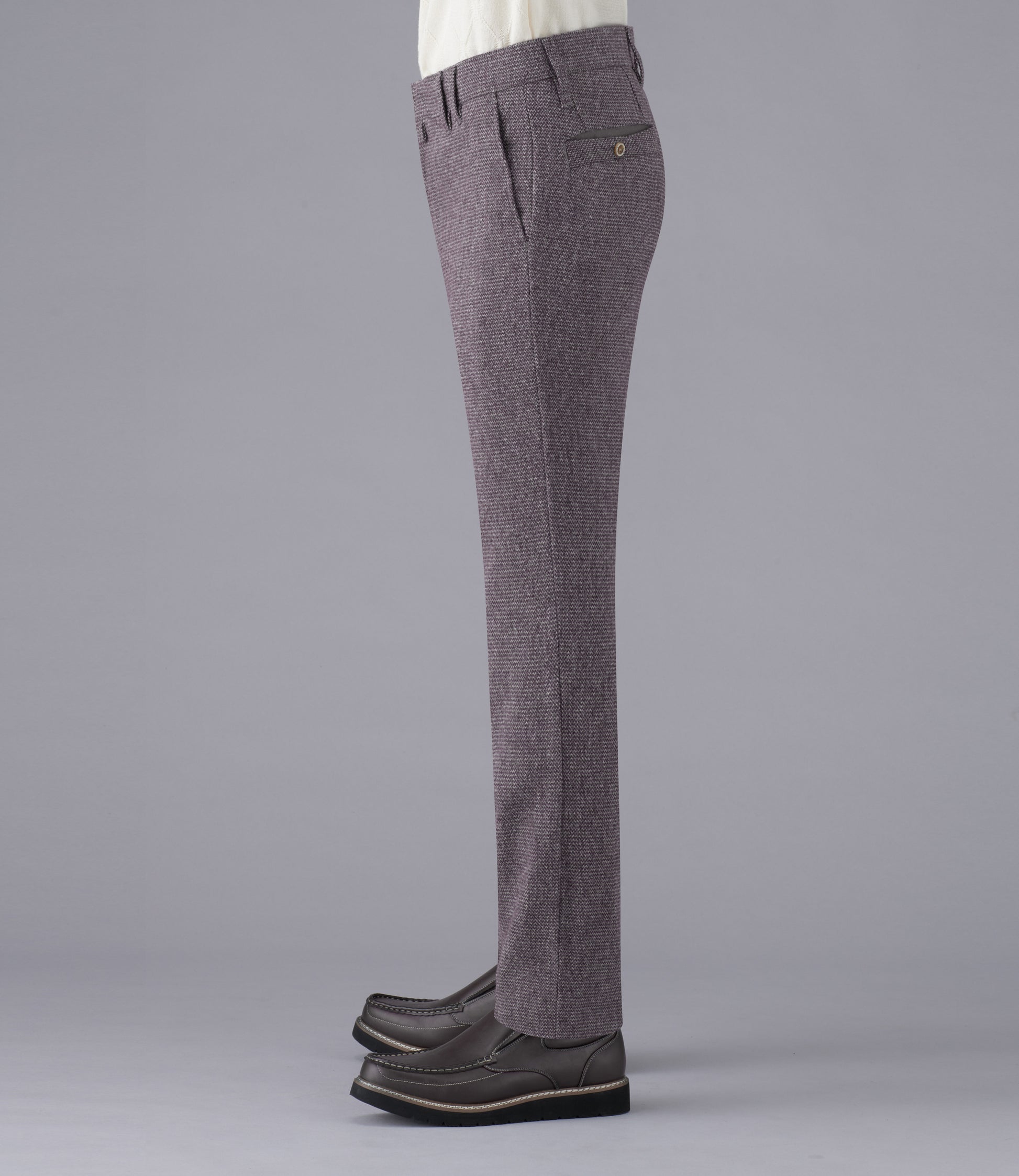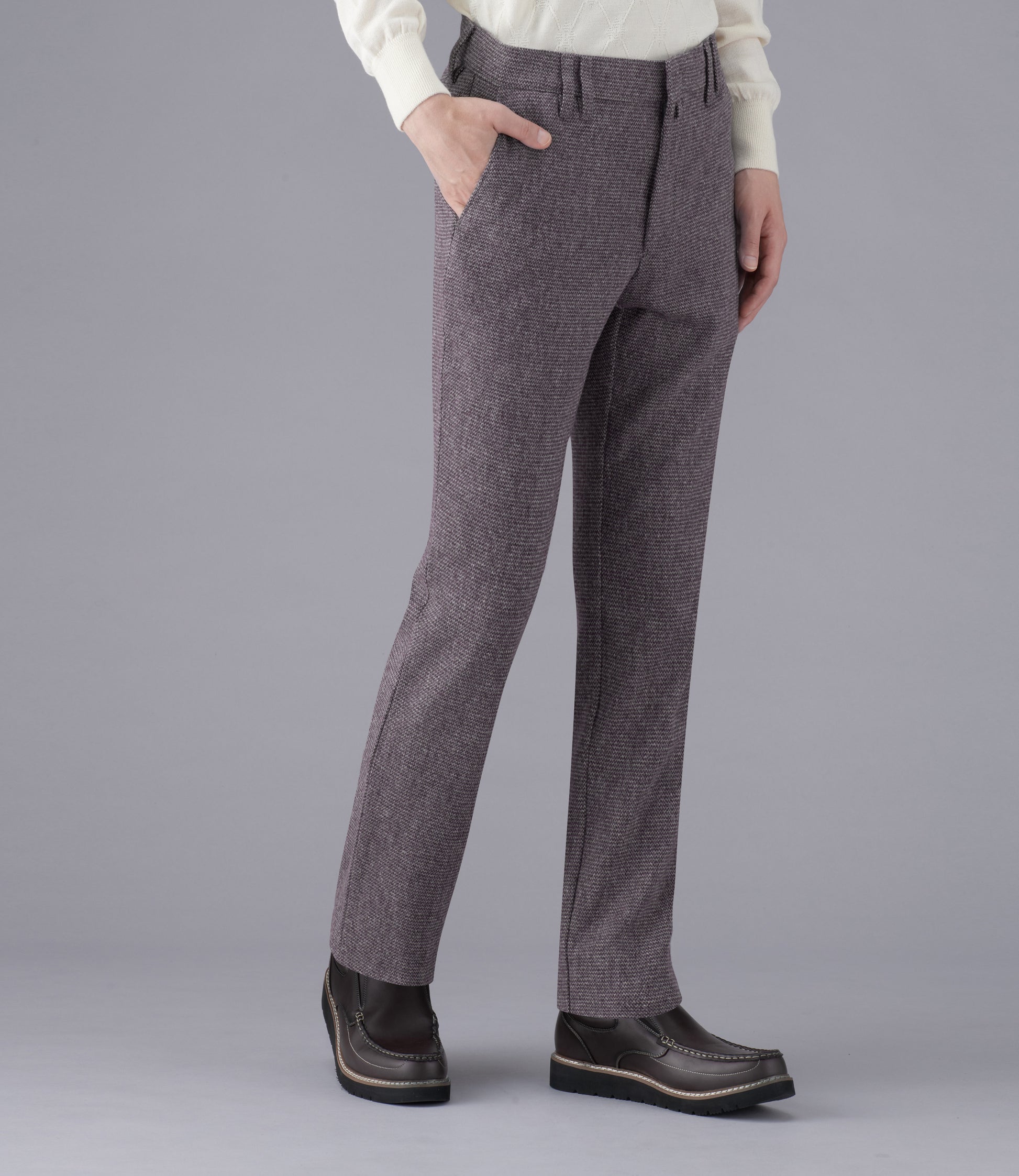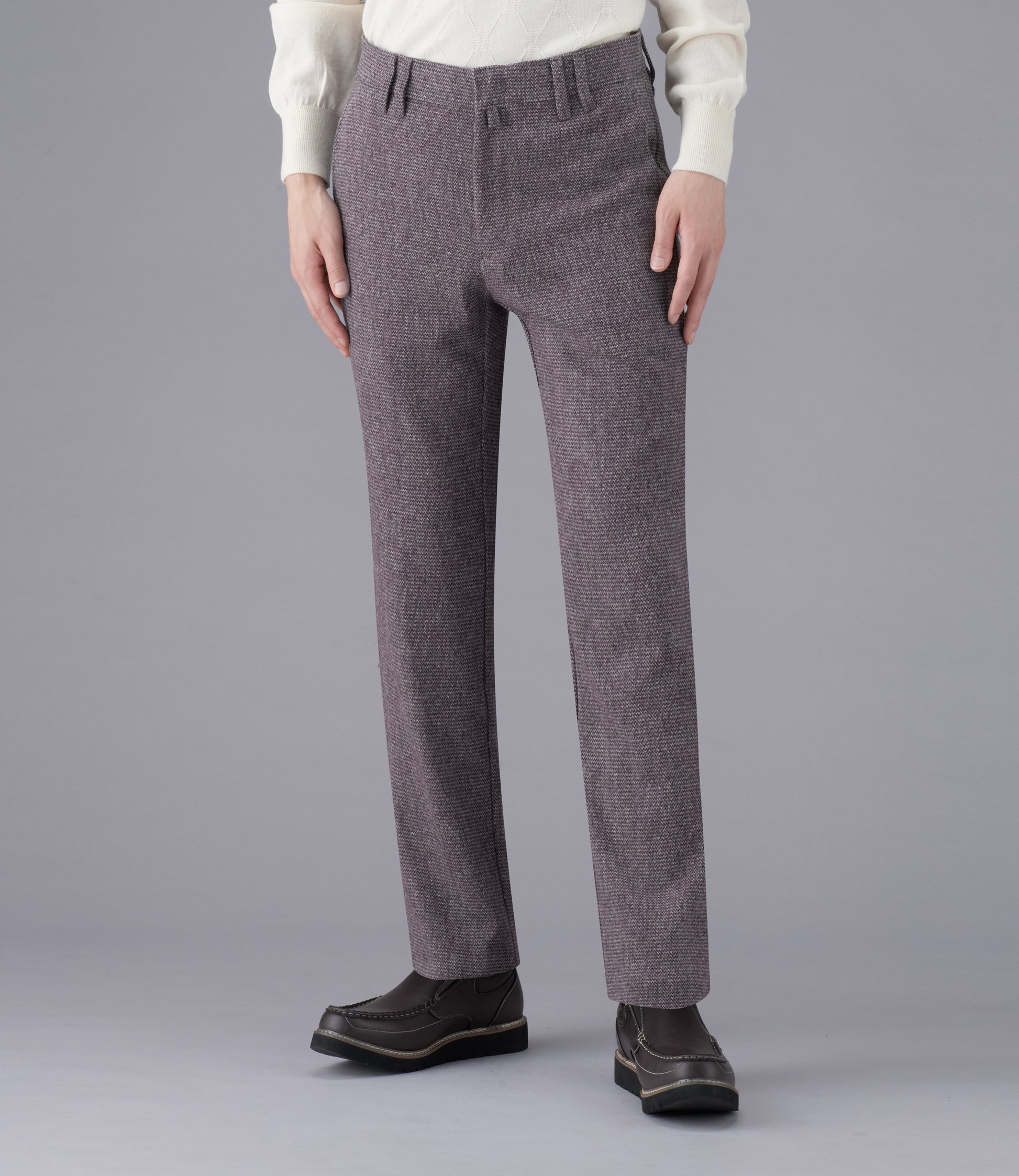 【オートミールツィード】ビジネス・カジュアル/ノータックスリムスラックス/蓄熱保温膝当て/ウォーム
