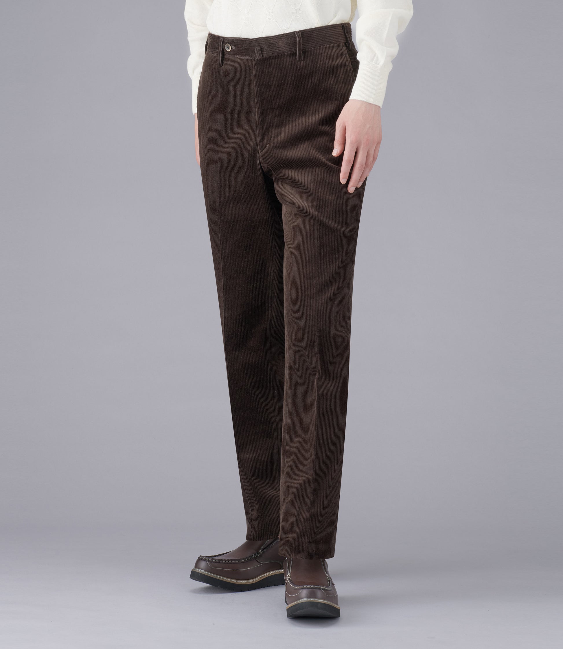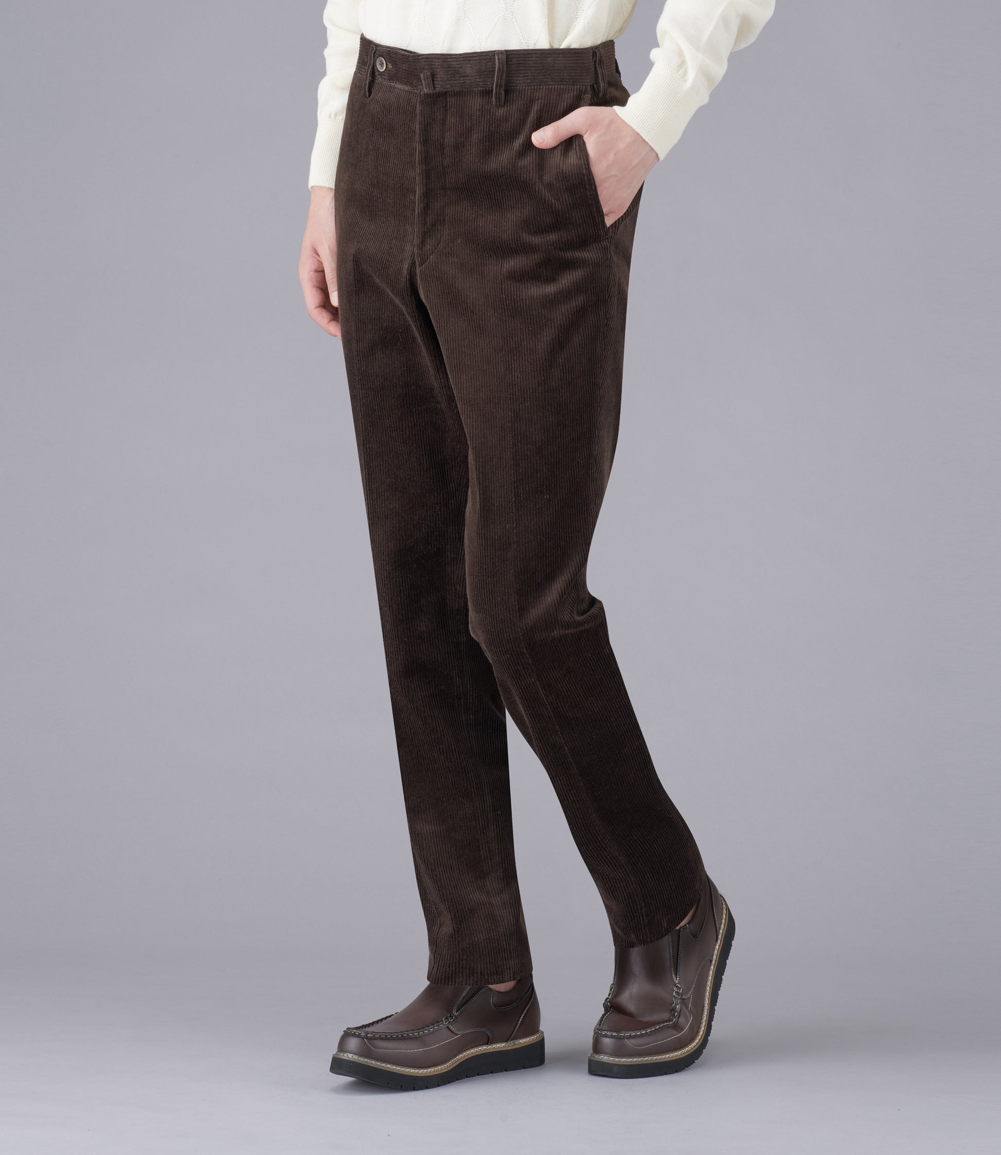 スラックス専業テーラー尾作隼人氏との共同開発スラックス。しっとりした優しい手触りの太畝コーデュロイパンツです。自然なハリコシがあり、しっかりした生地感で温かい見た目と上品な光沢感が魅力です。