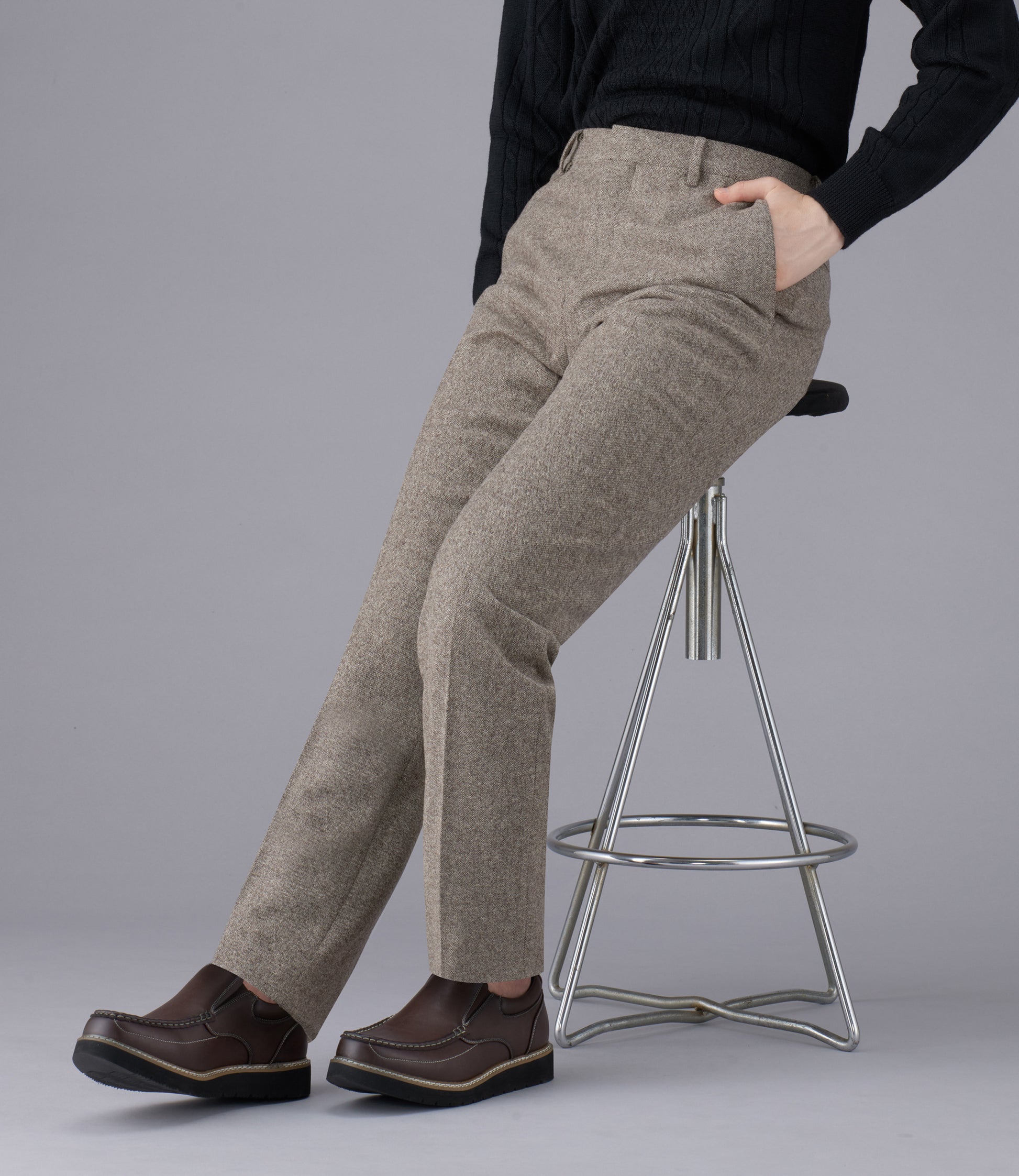 【2WAYストレッチツイード】日本製/ビジネス/ノータックスリムスラックス/ストレッチ/快適スリム